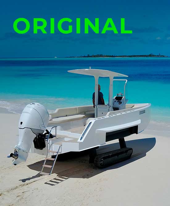 Los botes anfibios más capaces. Alto rendimiento en tierra y en el mar. Los botes anfibios Iguana son los más potentes y aptos para la navegación en el mundo. El diseño único de estos barcos de alta tecnología con orugas permite que la Iguana aterrice de manera segura en cualquier tipo de terreno, desde arena suave y barro húmedo hasta rocas irregulares y playas con piedras. Este bote anfibio que Yachtcancun pone a la venta en México es realmente todo terreno. La Iguana se embarca fácilmente en cualquier terreno. El aterrizaje con un bote anfibio Iguana es muy suave porque la operación es similar a la de un avión pues simplemente sigues las olas y activas el tren de aterrizaje antes de aterrizar.